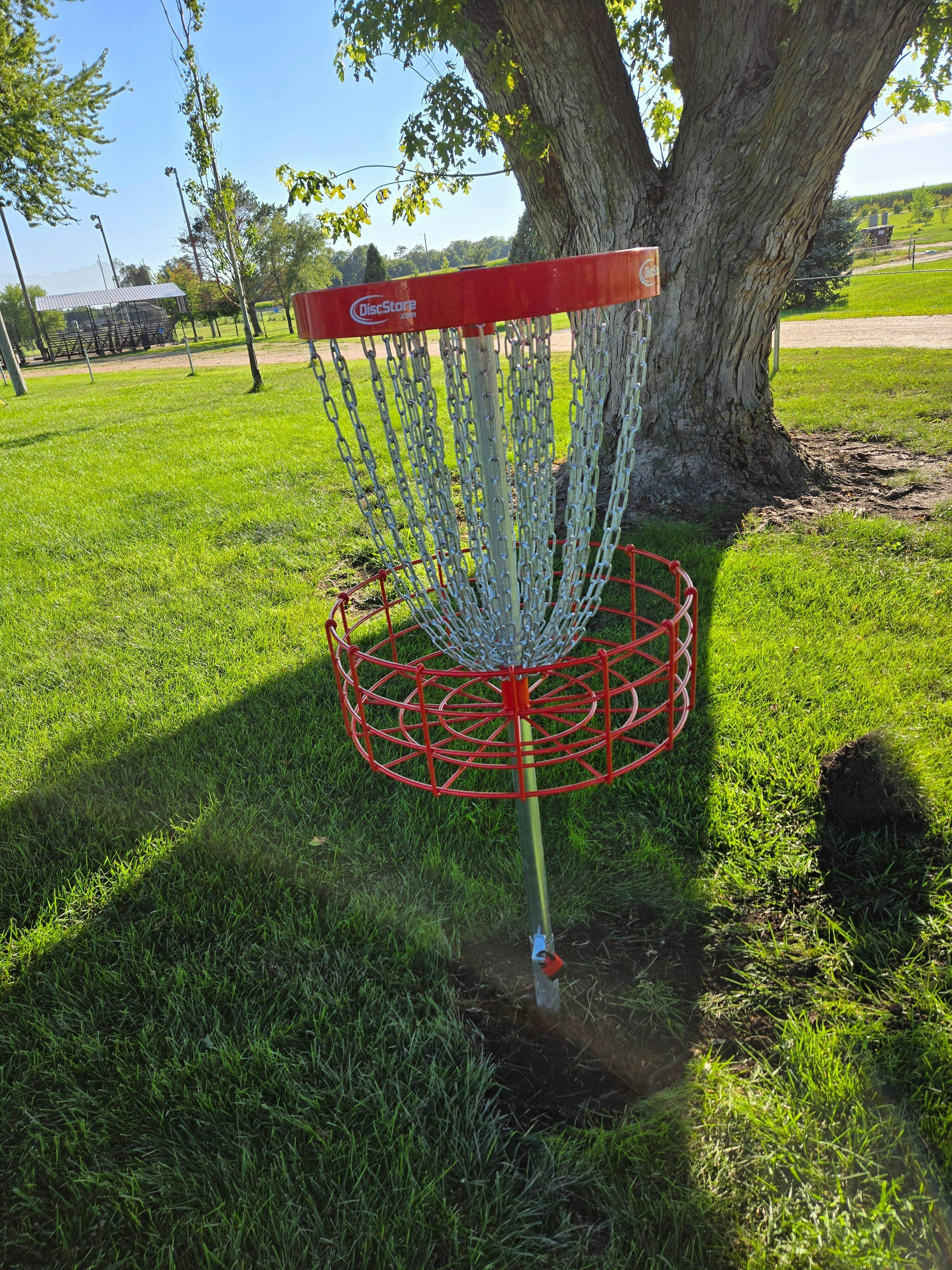 The Kershaw Community Park Council installed a 14 hole (that’s all the space we have) course last year. The baskets were easy to install and are very sturdy. We are having a tournament in 2 days. Come join the fun